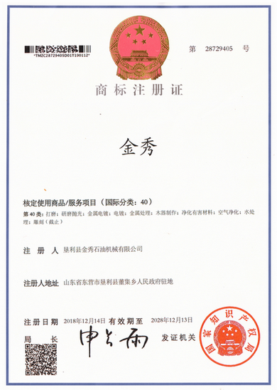 您所在的位置:垦利县金秀石油机械有限公司 < 商标注册